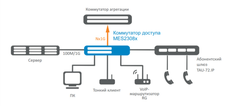 Схема применения ethernet-коммутатора MES2308R