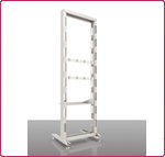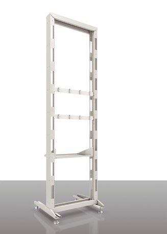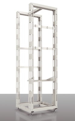 Полностью разборная двурамная конструкция, каркас повышенной жесткости скреплен болтами с внутренними шестигранниками. Стойка устанавливается на ровную поверхность, фиксируется к полу анкерными болтами. Для уменьшения площади установки предусмотрено два варианта монтажа опорных кронштейнов - наружу и внутрь стойки. Стойки могут крепиться между собой комплектом соединения или через вертикальный кабельный органайзер. Предусмотрена система заземления.