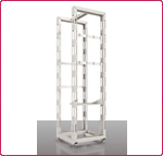 Полностью разборная конструкция, каркас скреплен болтами с внутренними шестигранниками. Монтажные стержни для установки плинтов выполнены из нержавеющей стали, надежно фиксируются металлическими кронштейнами. Стойка имеет развитую перфорацию и дополнительные органайзеры для фиксации кабеля.