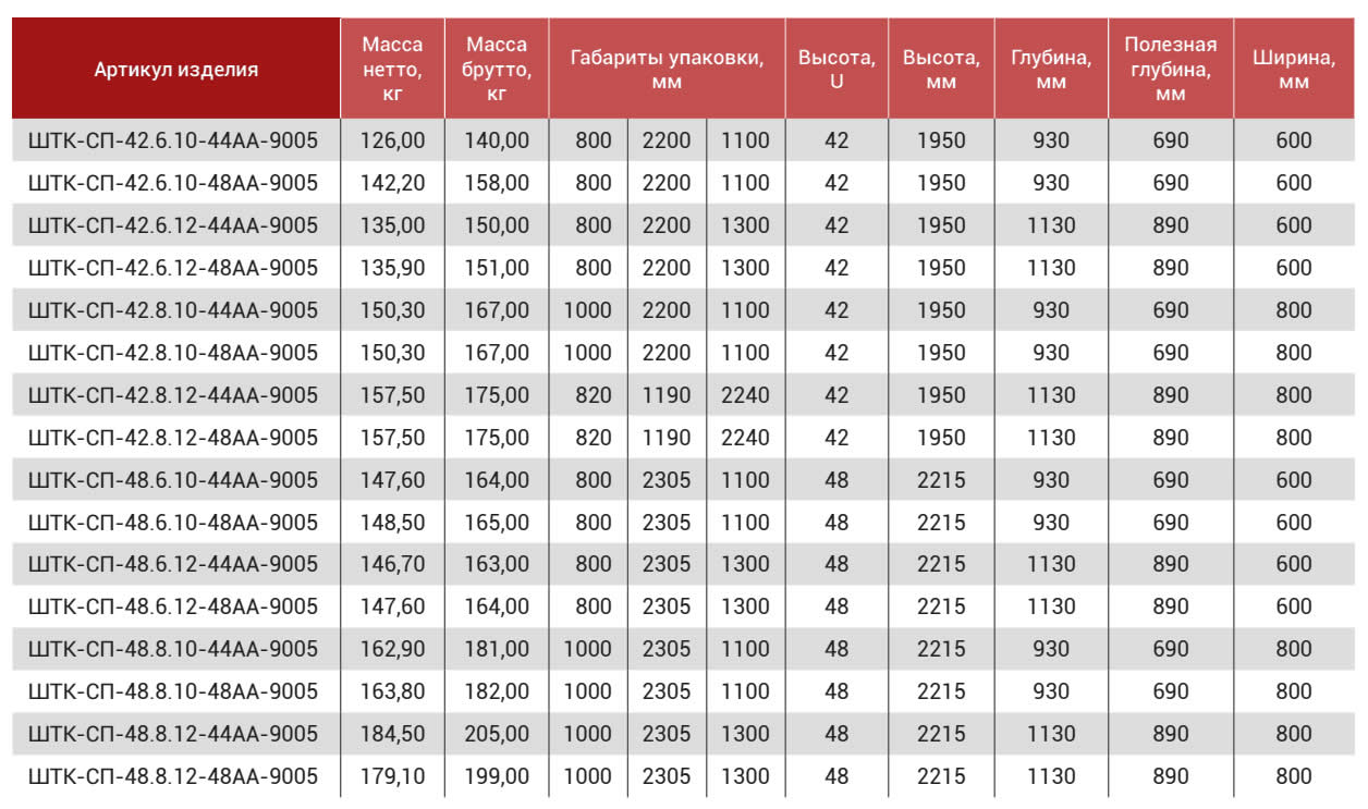 Цена с НДС | | ШТК-СП-42.6.10-44АА-9005 | Шкаф серверный ПРОФ напольный 42U (600 x 1000) дверь перф. 2 шт., черный, в сборе | 60 700,00 руб. | | ШТК-СП-42.6.10-48АА-9005 | Шкаф серверный ПРОФ напольный 42U (600 x 1000) дверь перф., задние двойные перф., черный, в сборе | 62 900,00 руб. | | ШТК-СП-42.6.12-44АА-9005 | Шкаф серверный ПРОФ напольный 42U (600 x 1200) дверь перф. 2 шт., черный, в сборе | 63 800,00 руб. | | ШТК-СП-42.6.12-48АА-9005 | Шкаф серверный ПРОФ напольный 42U (600 x 1200) дверь перф., задние двойные перф., черный, в сборе | 66 100,00 руб. | | ШТК-СП-42.8.10-44АА-9005 | Шкаф серверный ПРОФ напольный 42U (800 x 1000) дверь перф. 2 шт., черный, в сборе | 67 800,00 руб. | | ШТК-СП-42.8.10-48АА-9005 | Шкаф серверный ПРОФ напольный 42U (800 x 1000) дверь перф., задние двойные перф., черный, в сборе | 69 800,00 руб. | | ШТК-СП-42.8.12-44АА-9005 | Шкаф серверный ПРОФ напольный 42U (800 x 1200) дверь перф. 2 шт., черный, в сборе | 71 100,00 руб. | | ШТК-СП-42.8.12-48АА-9005 | Шкаф серверный ПРОФ напольный 42U (800 x 1200) дверь перф., задние двойные перф., черный, в сборе | 73 000,00 руб. | | ШТК-СП-48.6.10-44АА-9005 | Шкаф серверный ПРОФ напольный 48U (600 x 1000) дверь перф. 2 шт., черный, в сборе | 64 700,00 руб. | | ШТК-СП-48.6.10-48АА-9005 | Шкаф серверный ПРОФ напольный 48U (600 x 1000) дверь перф., задние двойные перф., черный, в сборе | 66 900,00 руб. | | ШТК-СП-48.6.12-44АА-9005 | Шкаф серверный ПРОФ напольный 48U (600 x 1200) дверь перф. 2 шт., черный, в сборе | 68 000,00 руб. | | ШТК-СП-48.6.12-48АА-9005 | Шкаф серверный ПРОФ напольный 48U (600 x 1200) дверь перф., задние двойные перф., черный, в сборе | 70 100,00 руб. | | ШТК-СП-48.8.10-44АА-9005 | Шкаф серверный ПРОФ напольный 48U (800 x 1000) дверь перф. 2 шт., черный, в сборе | 72 200,00 руб. | | ШТК-СП-48.8.10-48АА-9005 | Шкаф серверный ПРОФ напольный 48U (800 x 1000) дверь перф., задние двойные перф., черный, в сборе | 74 200,00 руб. | | ШТК-СП-48.8.12-44АА-9005 | Шкаф серверный ПРОФ напольный 48U (800 x 1200) дверь перф. 2 шт., черный, в сборе | 75 700,00 руб. | | ШТК-СП-48.8.12-48АА-9005 | Шкаф серверный ПРОФ напольный 48U (800 x 1200) дверь перф., задние двойные перф., черный, в сборе | 77 600,00 руб. |