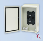 Два варианта исполнения: кросс и муфта (W-518M). Пылевлагозащита, класс IP-54. Корпус и крышка сварные, выполнены из листовой стали. Герметичные кабельные вводы. Количество сплайс-кассет в кроссе – 2, в муфте – до 7 штук.